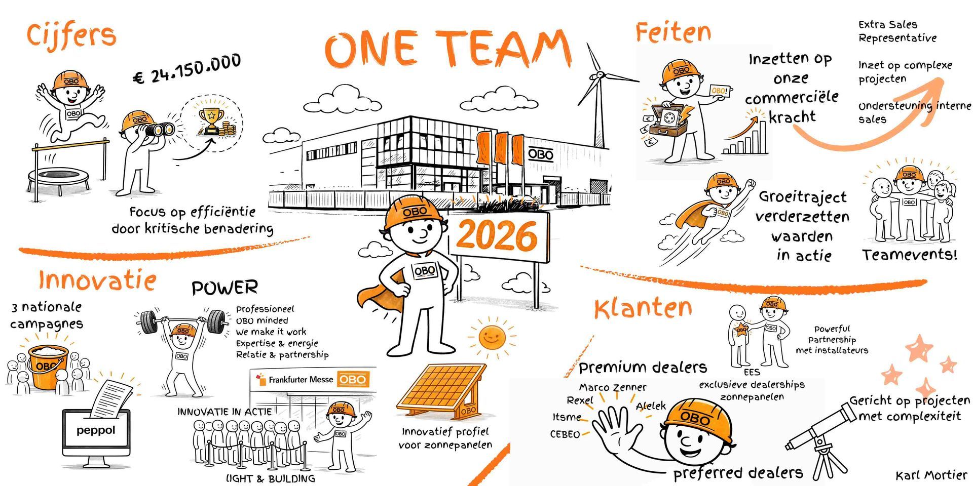 For OBO in Dendermonde, Karl guided the manager in his New Year's speech. Bart was looking for a new way to translate the annual traditional words into images and stories. In addition to practical coaching on the structure, he also actively sought suitable stories and images to highlight the 2026 ambition. This resulted in a concrete visual that will be used as an active tool throughout the year.