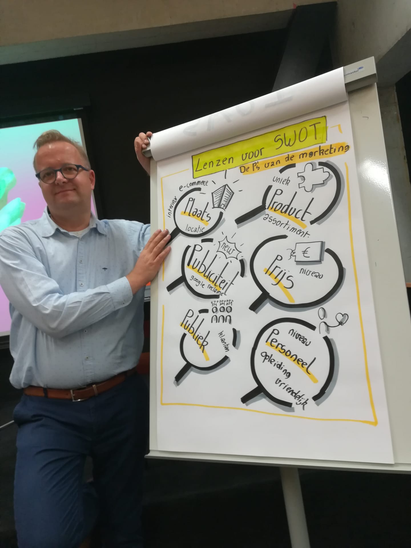 Voor een opleiding Marketing bij PMO visualiseerde Karl kort en krachtig de P's van Marketing.
